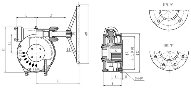 产品参数 1.设计标准采用ISO5211技术规范,结构合理。 2.铸件采用精密铸造,样式新颖,外形美观。 3.该装置采用蜗轮蜗杆传动,蜗轮副自锁,使用圆锥滚子轴承,传动更加灵活,效率高。 4.蜗轮内置螺母是独立的,这样和阀门配套会更加方便。 5. 防护等级为IP65。 6.手轮可根据顾客需求订制。